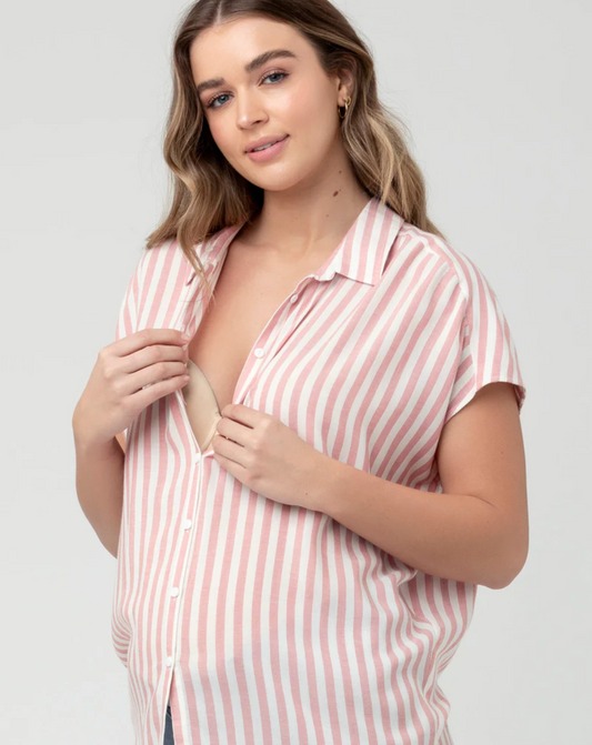 Pink Breastfeeding Linen Shirt