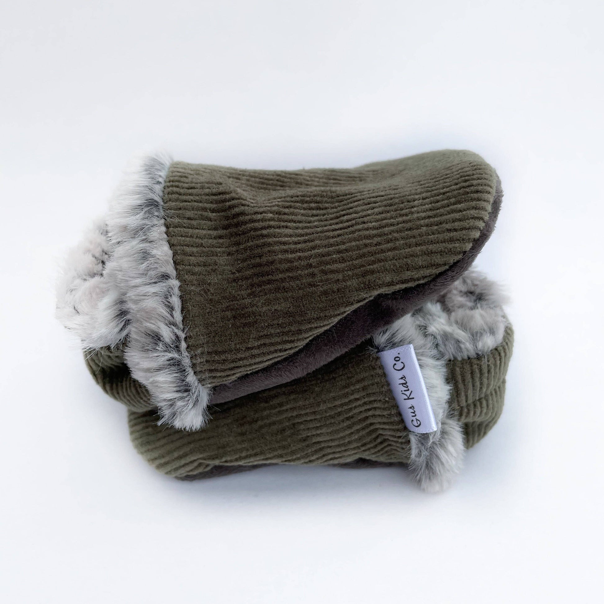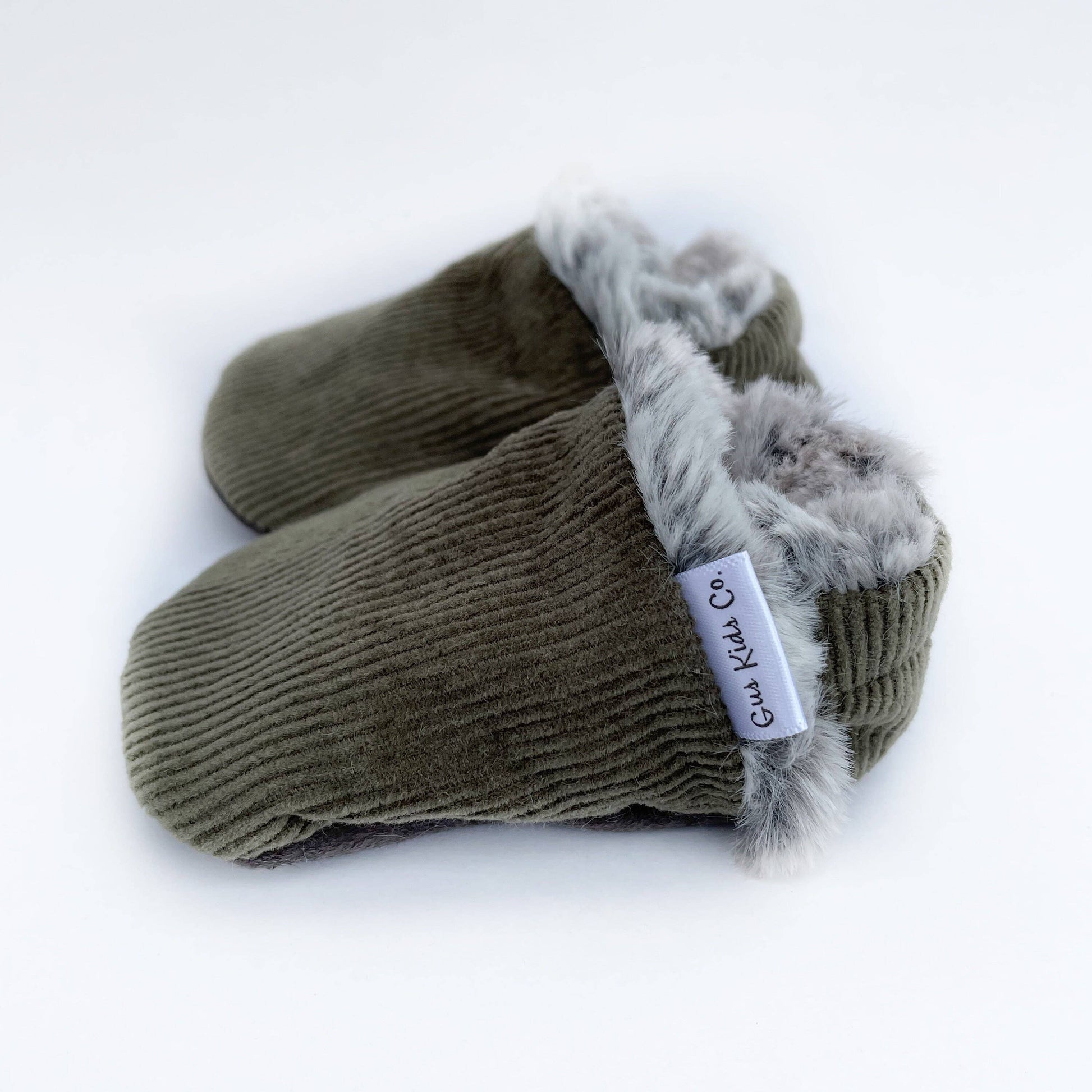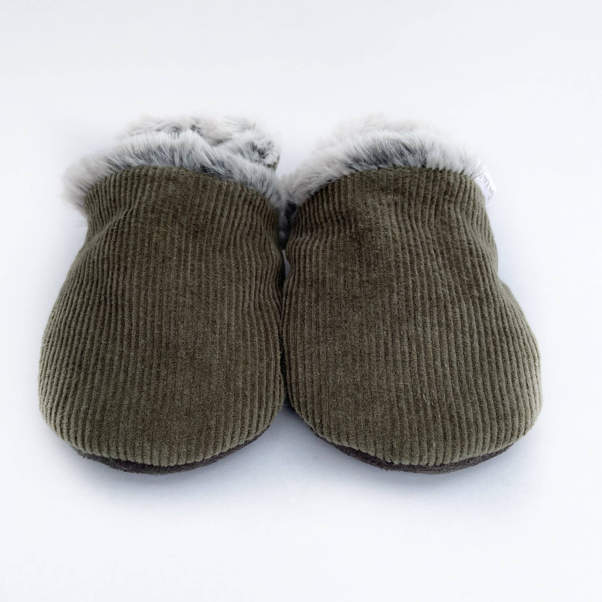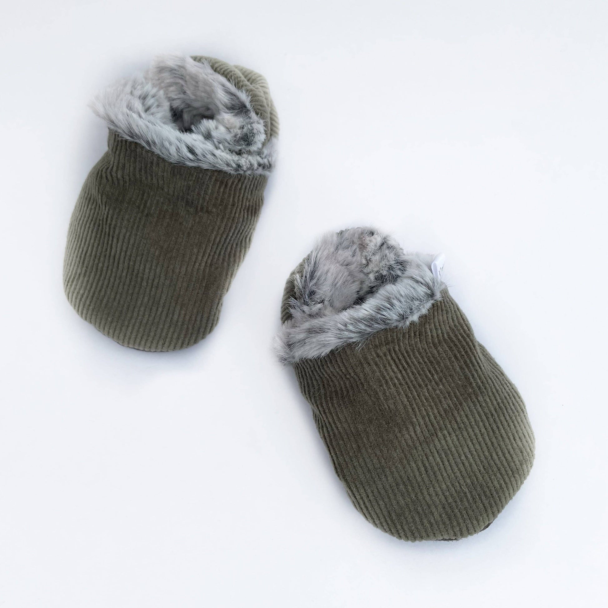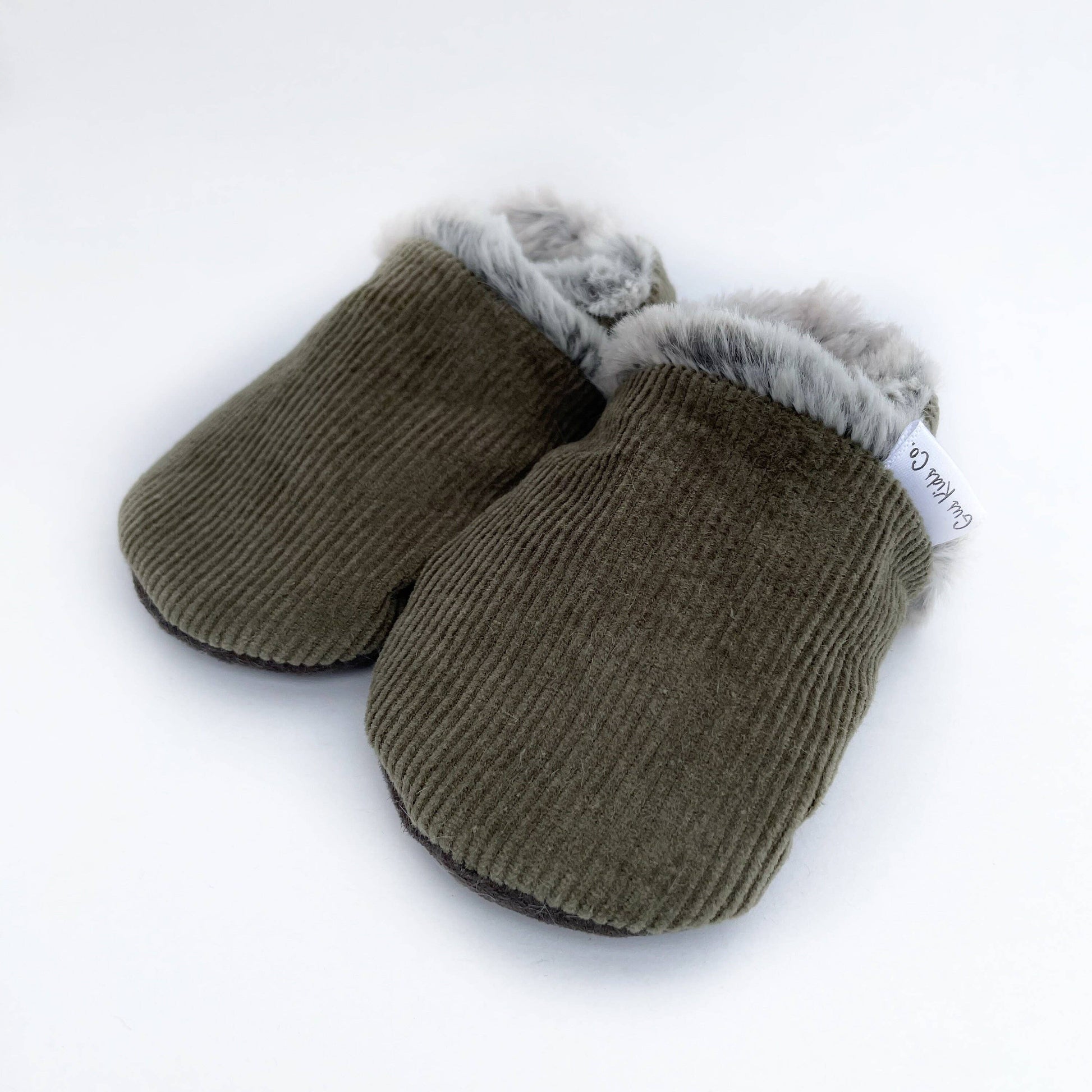 Gus Kids Co. - Olive Corduroy Baby Shoes -fur lined